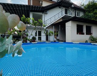 Поездом до ж/д вокзала г. Сочи, далее на автобусе №77, 76 до остановки «Окружная улица», далее 580 м до отеля.